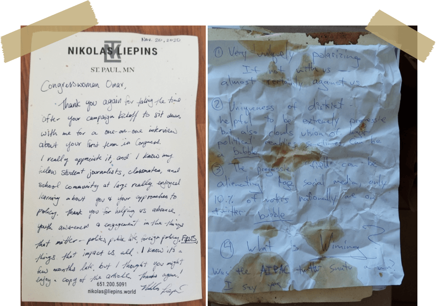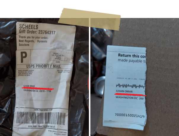 Discarded postal labels addressed to Congresswoman Omar’s DC residence.