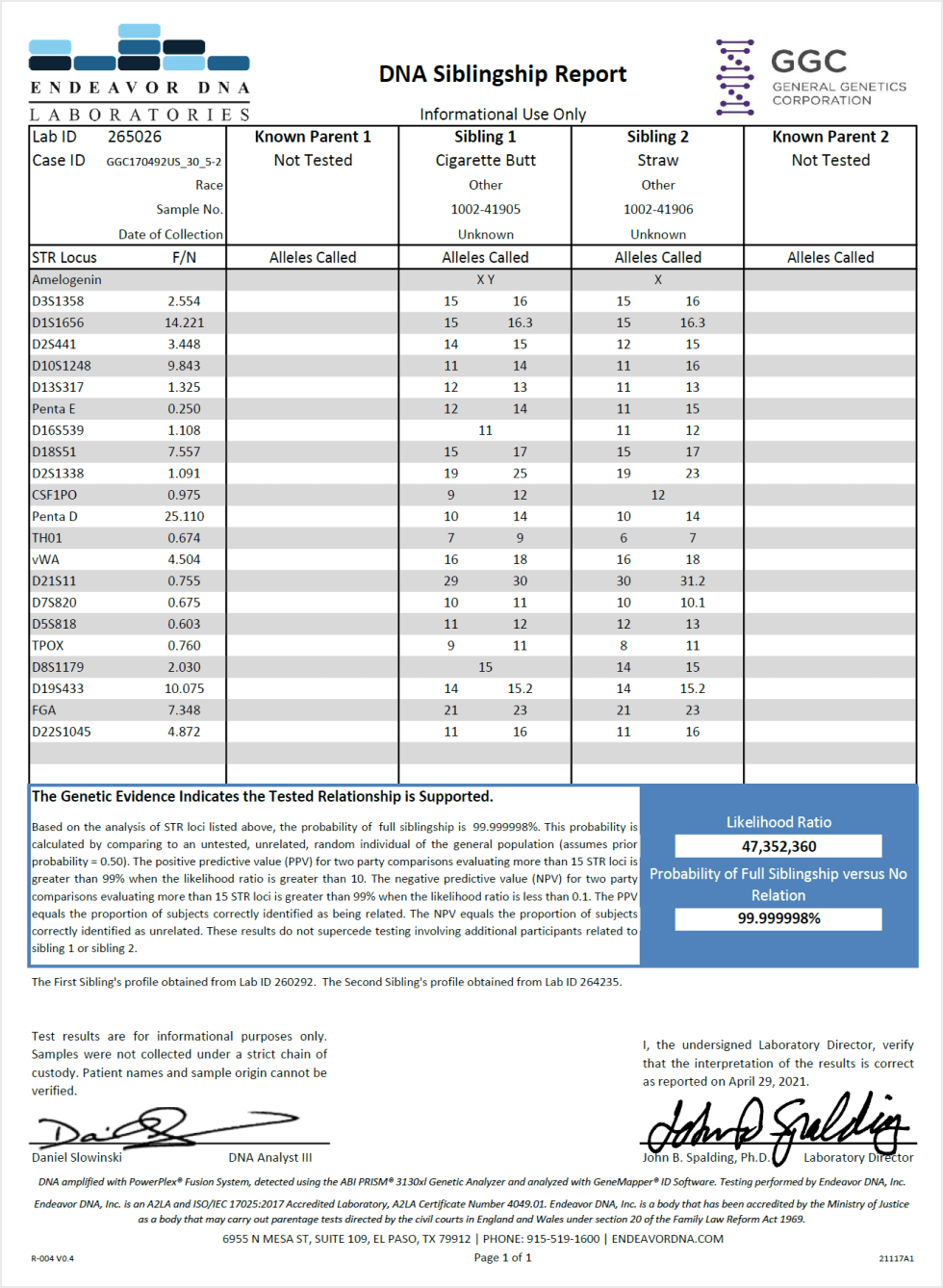 Below, you will find documented photographs of the surveillance, trash items, and the DNA Siblingship Report direct from the licensed laboratory conducting the comprehensive analysis.